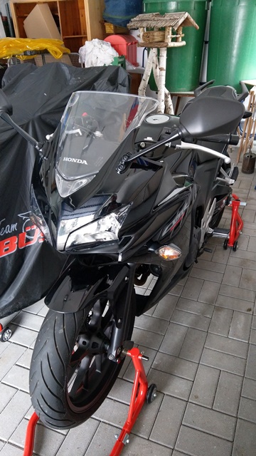 | Auftrag: | Nachrüstung von einstellbaren Brems- und Kupplungshebeln, schwarze Windschutzscheibe, mini LED-Blinker sowie eine neue Abgasanlage & KZH von Bodis. |