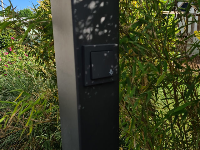 | Auftrag: | In diesem Objekt wurde die Außenbeleuchtung sowie sämtliche Außensteckdosen und Schalter erneuert. Zudem wurden Schalter und Steckdosen in die Pfosten der Terrassenüberdachung integriert. |
