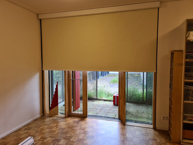 In diesem Kinderhaus wurden Verdunkelungsrollos im Schlafraum montiert. Der Behang hat für öffentliche Einrichtungen die Zertifizierung nach Baustoffklasse DIN 4102-1 - B1, schwer entflammbar und ist nach Öko-Tex Standard 100 zertifiziert. |