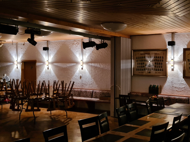 | Auftrag: | In diesem Objekt wurde die Beleuchtung im Saal teilerneuert, schlicht und modern, mit Wohlfühlatmosphäre. |
